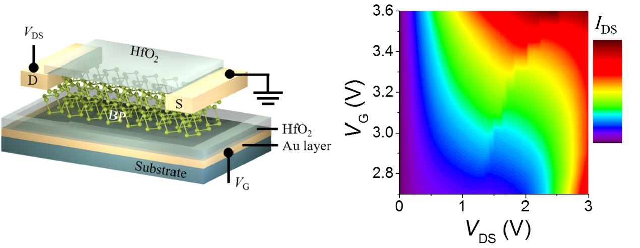 在传统半导体领域中,材料不同的导电类型通常来源于不同的杂质掺杂,无法通过电学实现导电行为的转换。而在双极性二维半导体中,电子和空穴可同时在沟道中传输,其导电行为不仅受栅电压的调控,也很大程度上受到源漏电压的影响。这一效应在薄栅介质层器件中尤为明显,可为未来可重构电路芯片的设计提供新的途径。何军教授课题组长期从事双极性二维半导体器件方面的研究,包括双极性二维半导体导电类型的界面调控(Adv. Mater. 2019, 31, 1901144;Adv. Mater. 2019, 31, 1805317)和双极性二维半导体异质结导电行为的动态调控(Adv. Funct. Mater. 2019, 29, 1804897;Nat. Electron. 2018, 1, 356-361)等。近期,国际权威期刊Advanced Materials(《先进材料》)在线发表了何军教授课题组在双极性二维半导体器件方向取得的新进展,论文题目为:“Modulation of Negative Differential Resistance in Black Phosphorus Transistors”(《黑磷晶体管中的负微分电阻调制》)。吃瓜网站