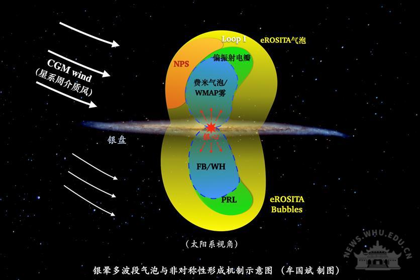图1:银心超大质量黑洞产生外流与星系周介质作用产生多波段气泡。