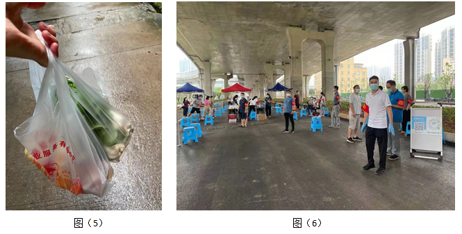 唐羽同志(图1)积极参加了放鹰台社区的下沉工作,完成核酸检测现场服务引导、填写疫苗登记信息、社区卡口值班等多项任务。方萍同志(图2)在学校文理学部社区,负责完成了繁琐的核酸检测登记工作。程晓婷(图4)、董甲庆(图6)两位同志也都在积极投身所在社区的服务工作。吕晶同志在下沉服务中,除了完成社区集中安排的核酸检测服务、信息摸排反馈等工作,还为服务社区独居老人做到了“三帮四查一问侯”,即在查看吃、穿、住、病并送上问候的同时,帮忙送饭、代买药品和生活物资,图5就是她为老人们“送菜上门”。