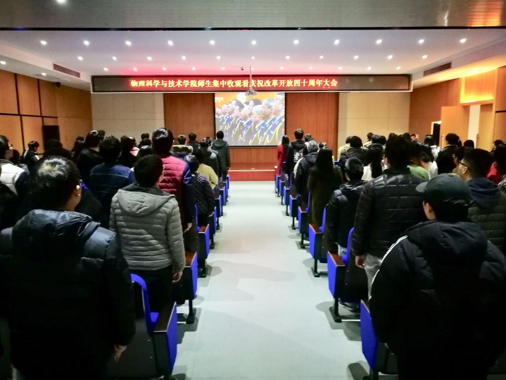 1218日,习近平总书记在庆祝改革开放40周年大会上发表重要讲话,为了加强学院师生员工理想信念教育,不忘初心、牢记使命,激励自我,学院党委组织全体师生员工集中观看大会直播,共同回顾中国改革开放40年的伟大历程,总结经验,继续前行!