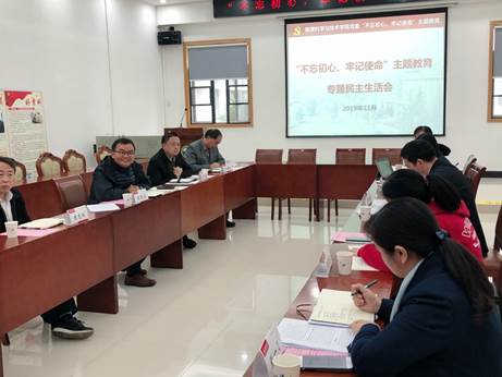 2019年11月23日上午,学院在党员活动室召开“不忘初心、牢记使命”主题教育专题民主生活会,学校主题教育第一巡回指导组组长、校党委研究生工作部部长楚龙强出席会议并讲话,第一巡回指导组副组长、校友事务与发展联络处副处长张晶,第一巡回指导组赵洁老师、陶孝芳老师到会督导。学院领导班子成员王建波、何军、张一飞、张宇宁、方萍、乔豪学、陈志权、方国家、李利华在会上作对照检查报告。会议由党委书记王建波主持。