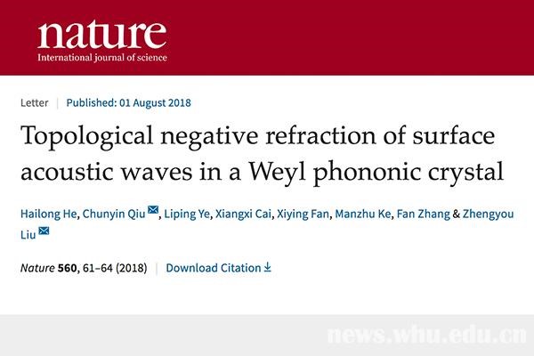 基础理论研究与应用研究并重,高水平科研成果不断涌现。随着国家对基础学科的日益重视和科研条件的改善,学院科学研究在量上有提升,在质上有突破。以第一署名单位在《Nature》(Nature 560, 61 (2018))上发表论文“Topological negative refraction of surface acoustic waves in a Weyl phononic crystal”(《外尔声子晶体中的声表面波拓扑负折射》),实现了吃瓜网站 建国后历史上的突破。学院高水平论文数量和质量逐年增长,2021年第一单位发表论文246篇,其中,一区论文78篇,IF>10(含PRL)40篇。近年来,学院累计获得国家自然科学二等奖1项,湖北省自然科学奖一等奖4项,湖北省自然科学二等奖1项。学院与中科院精密测量院、华中科技大学共同组建武汉量子技术研究院,开展量子科学基础理论研究与核心关键技术攻关,推动量子工程示范应用和科技成果转化,在量子芯片、量子保密通信、量子材料、量子感知和量子计算等量子科技产业化上发展快速。