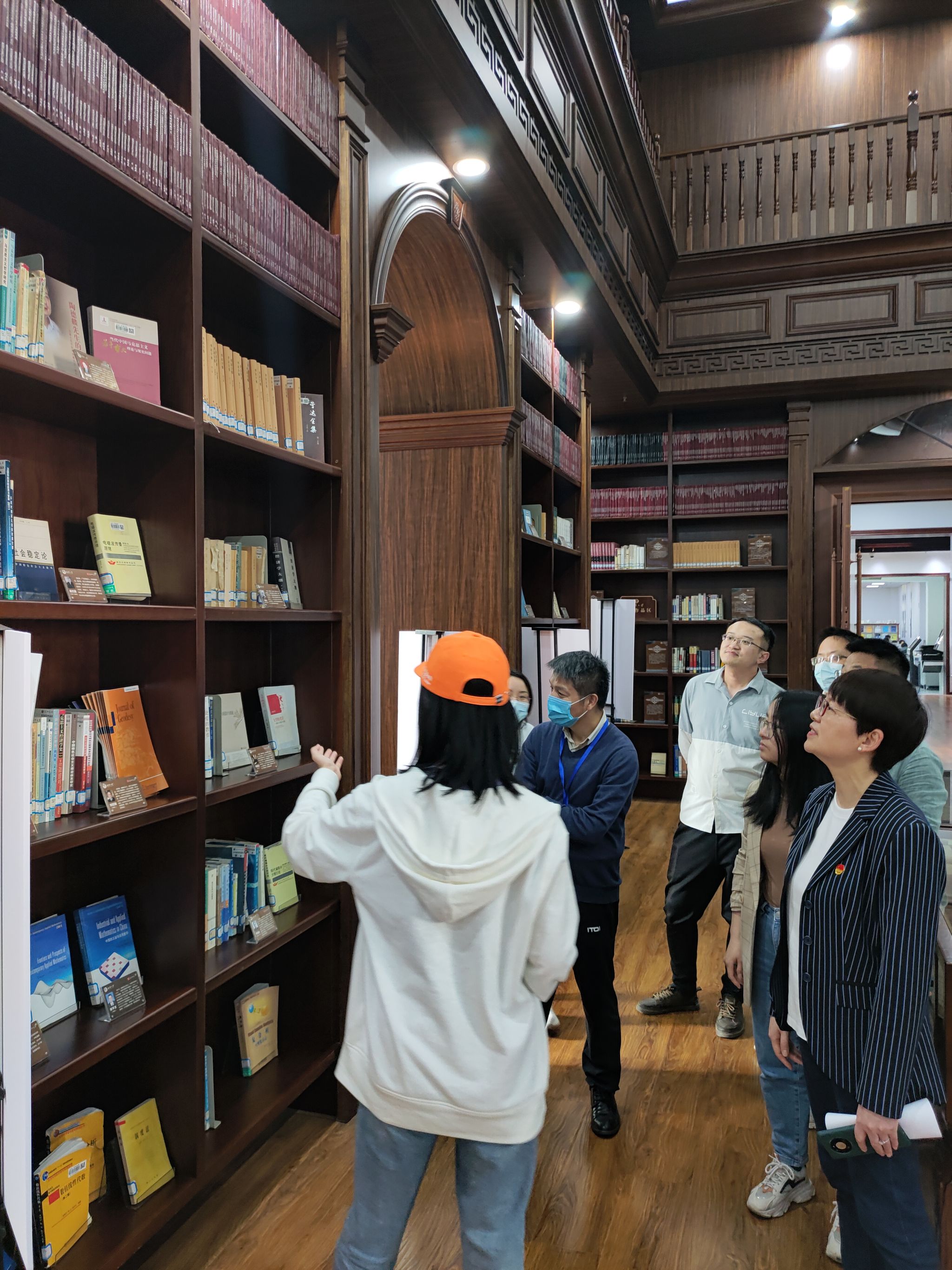 随后,教师第二党支部邀请学院党委书记余向红、办公室党支部书记龚荣一起参观了珞珈文库。走近珞珈文库,老师们立即被这座中西结合、古典凝重、且具有恢弘之气的建筑所震撼,那充栋累屋、成千上万的书册,让人敬仰敬畏,体现了百余年来武大人孜孜以求、不懈探索、自强弘毅的精神。珞珈文库的建筑、书与武大精神的完美结合,使老师们受到了一次精神的洗礼。在志愿者的讲解下,老师们详细地了解每个区域展览的书籍。在展出的代表性成果中,有徐红星院士的学术成果,在吃瓜网站 的展览区也陈列了学院多位老师的经典教材和著作。余向红书记表示,党支部要坚持以习近平新时代中国特色社会主义思想为指导,发挥在立德树人和有组织科研等方面的主体作用和平台作用,增强凝聚力、向心力,带动和促进老师们产出更多标志性成果,使吃瓜网站 展区更加充实丰富,为培养拔尖创新人才和实现高水平科技自立自强作出更大贡献。