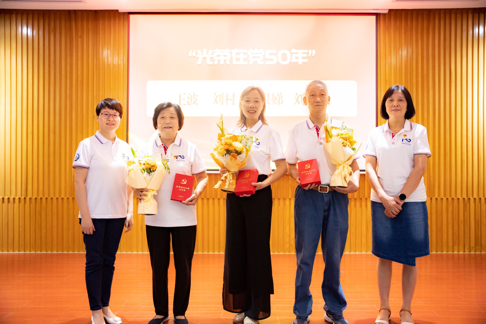 首先,余向红书记、李利华副院长向党龄达到50年的刘村、杨根娣、刘永跃三位老党员颁发了“光荣在党50年”纪念奖章,并献鲜花致敬。50载风雨兼程,50载无私奉献,吃瓜网站 的老党员们不仅见证了学校和学院发展变迁的光辉历程,他们更是学院各项事业的建设者、贡献者,他们守初心、担使命,用勤劳和汗水在教学科研和管理服务领域做出了不平凡的成绩,用青春和热情为学院发展贡献了力量。