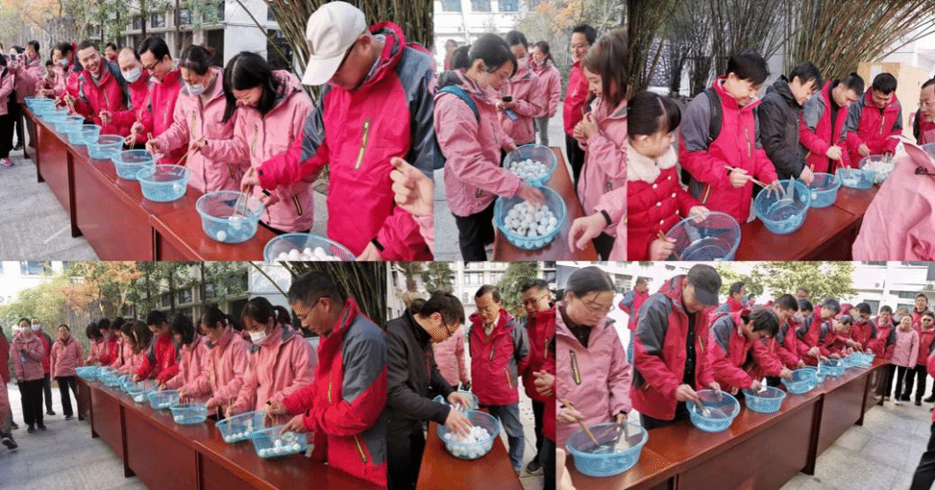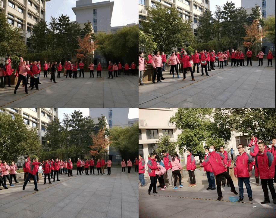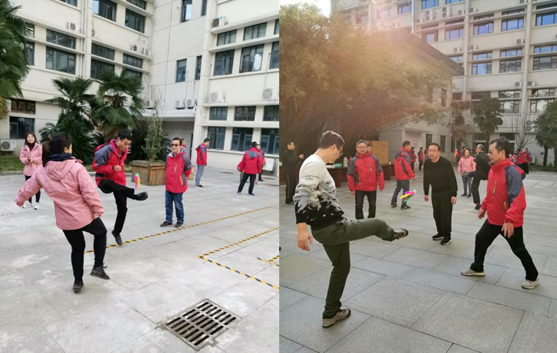 初冬的寒冷抵挡不住老师们的热情,参赛教工们兴致盎然地围在一起,认真进行热身、争分夺秒练习比赛项目,静谧的院内天井充满了活力。此次活动共有5个团体项目:夹乒乓球接力、网球掷准、踢毽子传递、螃蟹赛跑和绑腿走。