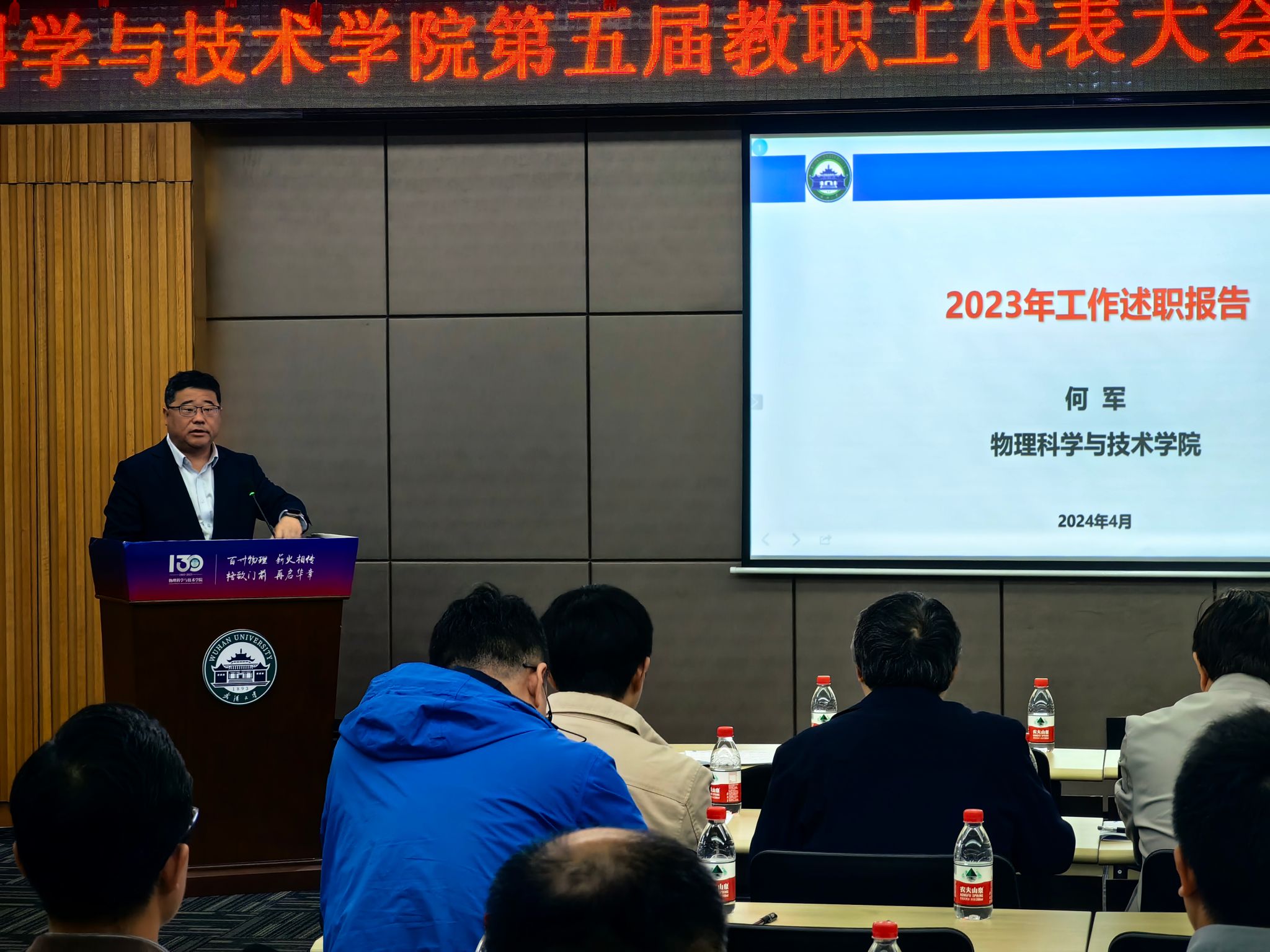会议听取了院长何军作的学院2023年工作报告。何军院长从人才引进及发展、教学科研工作进展及成果等方面介绍了2023年学院整体发展情况,指出学院在取得骄人成绩的同时还需进一步凝聚力量、共谋发展。报告中他还结合实际案例和自身课题组发展情况,情真意切地鼓励教职工特别是青年教师们能够人尽其才、才尽其力,在学院内外广泛交流、加强合作,寻求机遇,争取取得突破性进展。
