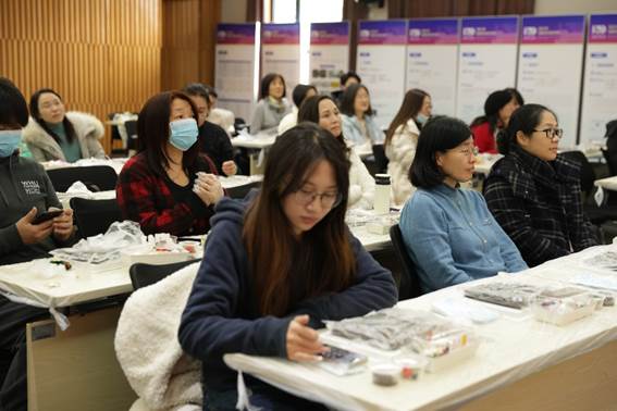 在蛋糕师的指导下,大家首先学习了制作慕斯蛋糕的基本知识。蛋糕师详细讲解了奶油、巧克力等重要原材料的特性,并亲自示范了蛋糕抹油的过程及注意事项。老师们聚精会神地聆听,不时提出问题,现场气氛十分活跃。