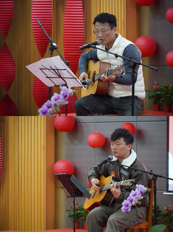 董仕练老师以深情的吉他弹唱,演绎了动人的爱情歌曲,让现场观众沉浸在温馨的氛围中。天文系丁旭恒老师的吉他弹唱《歌曲串烧》,借歌曲《夜空中最亮的星》表达其对星空不断探索的志向,现场观众纷纷打开手机灯光,配合其营造浪漫的星空氛围。其后多首经典歌曲的巧妙融合,展现了其高超的音乐才华,赢得了满堂喝彩。