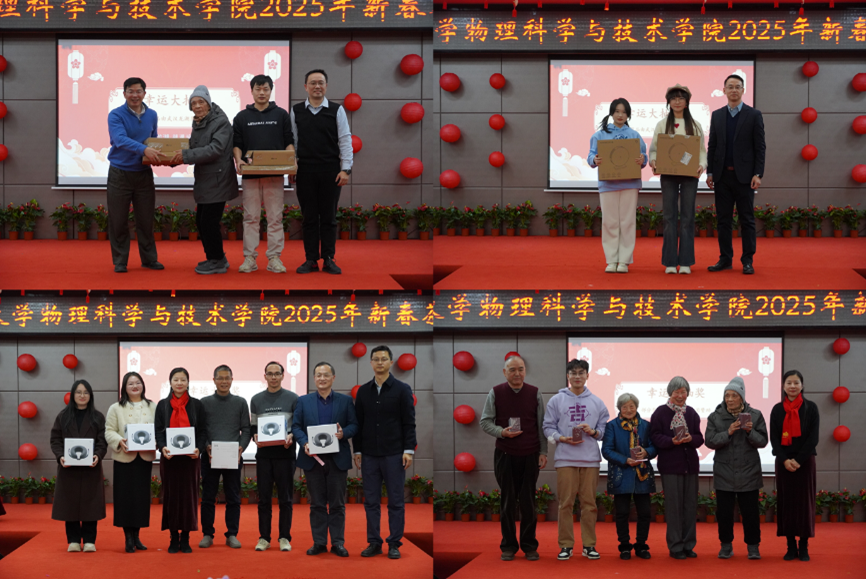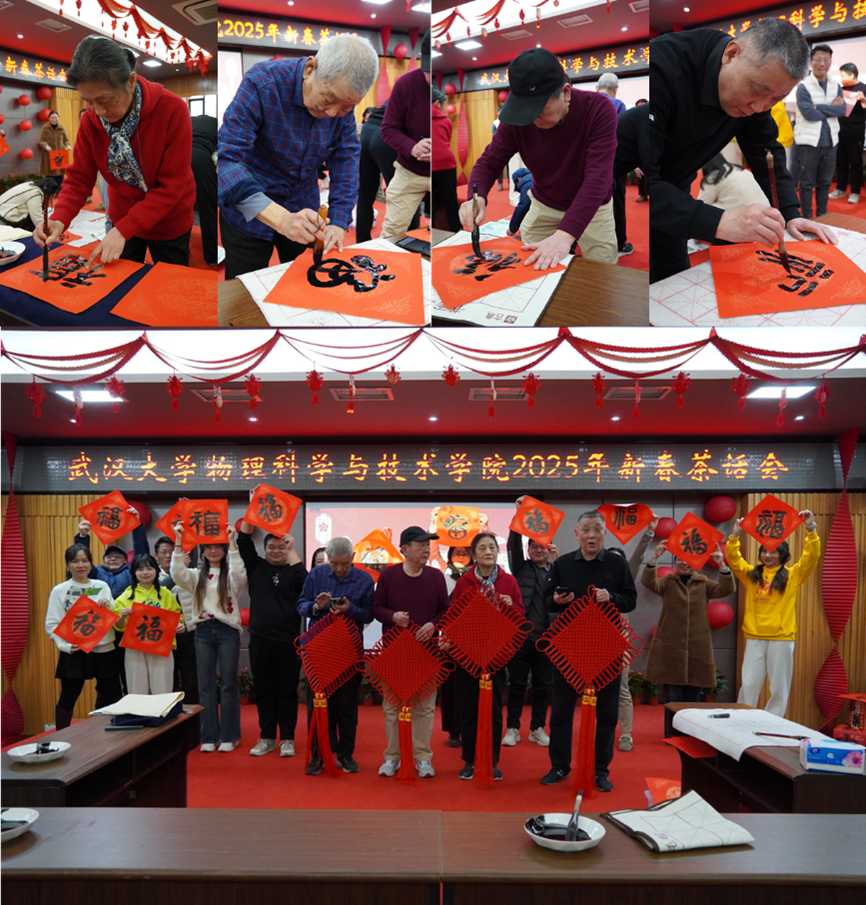 周殿清、马莉、彭友贵、汪大海四位离退休老师以现场书法的形式,为大家送上了新春的祝福。墨香四溢的“福”字充满了对新年的美好祝愿,大家积极回答问题,争先恐后地纷纷上台领取福字,同时也接下了这份美好的祝福。