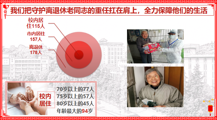 长期以来,学校党委高度重视退休老同志和困难教职工及家属的帮扶工作,春节走访慰问已成为学院的一项传统。众志成城,共克时艰,学院离退休老同志们在党委的关心关注下,度过了不平凡的2020年,战胜了新冠肺炎疫情,新年即将来临,学院党委将继续扎实做好离退休工作,为老同志们提供坚强的后盾!