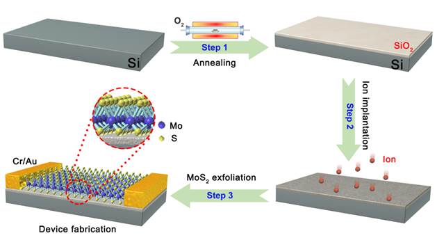 该研究论文题目为“Design of high performance MoS2-based non-volatile memory via ion beam defect engineering”。本研究工作通过热氧化法在硅基底上制备二氧化硅层,再利用N离子注入实现一步法构建隧穿层、电荷俘获层和阻挡层堆叠层。然后,通过机械剥离的方法在衬底上转移MoS2。最后,通过对比Ar离子注入的器件,探讨这种电荷捕获型存储器的性能与工作原理。二维材料MoS2作为其沟道材料以利用其高载流子迁移率和与氧化硅适配的功函数。以此制备的器件具有大的窗口、高的响应速度和优秀的保持特性。