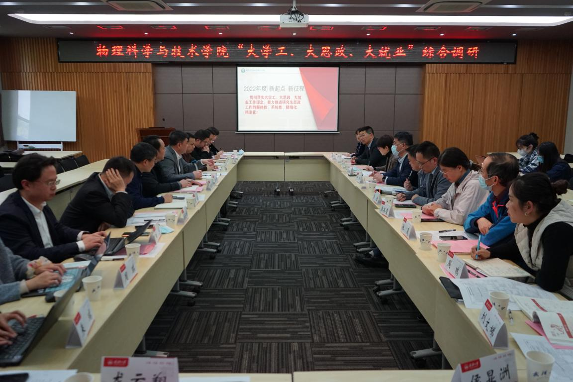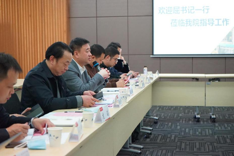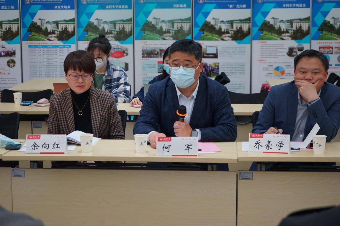 院党委书记余向红从领导班子分工、党建思政、招生就业、人才培养等多个方面全面介绍了学院大思政的基本情况。院长何军介绍了学院立足学科特色和学生特点,全面加强教育教学、学生就业工作的主要做法及成效。院党委副书记张一飞围绕本科生就业工作、研究生的教育与管理工作两个调研主题,以就业“一把手工程”的落实、理科专业“二战”学生的实际情况、本科生学业帮扶的“双师”计划、研究生思政工作的亮点和2022年度的工作计划为主要内容,向在场领导老师详细汇报了我院本、研学生工作的情况。副院长乔豪学、院长助理常胜、刘威等几位老师,也就学院开展学业帮扶和就业推进的主要做法进行了补充。