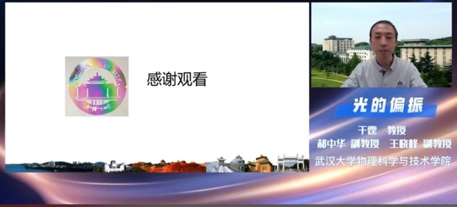 主讲人于霆老师承担物理专业全英文课程《optics》的讲授工作,郝中华老师讲授物理专业《光学》、公共基础课《大学物理》和《大学物理实验》、通识课《自然科学导引》等课程,王晓峰老师讲授《大学物理》和《大学物理实验》、通识课《物理演示实验》等课程。课件PPT的优化方面,还得到了《光学》课程组张顺平教授的建议和帮助。科普视频的录制得到了湖北省物理学会和吃瓜网站