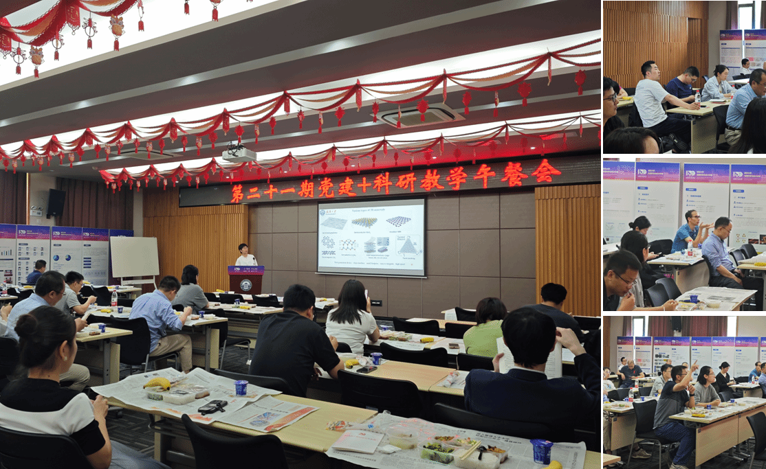 教师第一党支部牵头开展的第二十一期“党建+科研教学午餐会”系列活动在新楼五楼多功能厅成功举办。本次午餐会邀请了学院于艺羚特聘研究员为主讲人,以题为“二维半导体激子多体作用对光学性质的影响”,系统讨论了二维TMD激子相变的物理路径,以及在不同激子物相中展现的有趣的发光特性和激子传输性质。在互动环节,张顺平教授、肖孟教授、王倜研究员等参会老师就报告内容展开了热烈的讨论。