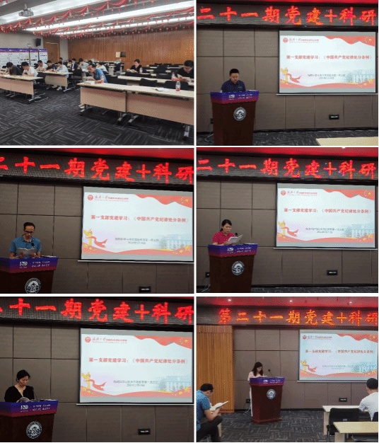 随后,教师第一党支部开展主题党日学习活动,会议主题为学习《中国共产党纪律处分条例》。党支部书记刘晓泽主持会议,全体支部党员参加学习。《中国共产党纪律处分条例》全面贯彻习近平新时代中国特色社会主义思想和党的二十大精神,从党章这个总源头出发,坚持严的基调,坚持问题导向和目标导向相结合,与时俱进完善纪律规范,进一步严明政治纪律和政治规矩,带动各项纪律全面从严,释放越往后执纪越严的强烈信号,发挥纪律建设标本兼治作用。支部书记刘晓泽、组织委员张顺平、纪检委员郝中华、统战委员张立、宣传委员赵培丽分别领学了《中国共产党纪律处分条例》的总体要求和适用范围、纪律与纪律处分、纪律处分运用规则等总则内容。紧紧围绕党纪学习教育,立足岗位工作实际,畅谈、分享学习心得和理解感悟,充分展示新时代党员干部担当作为、积极向上的精神风貌。