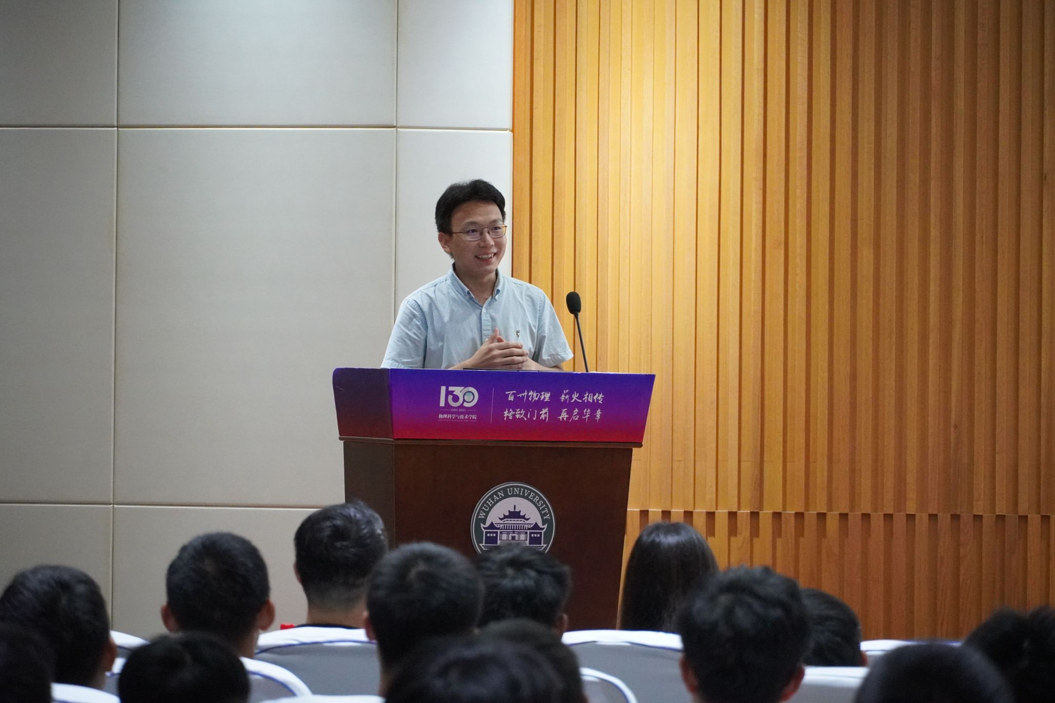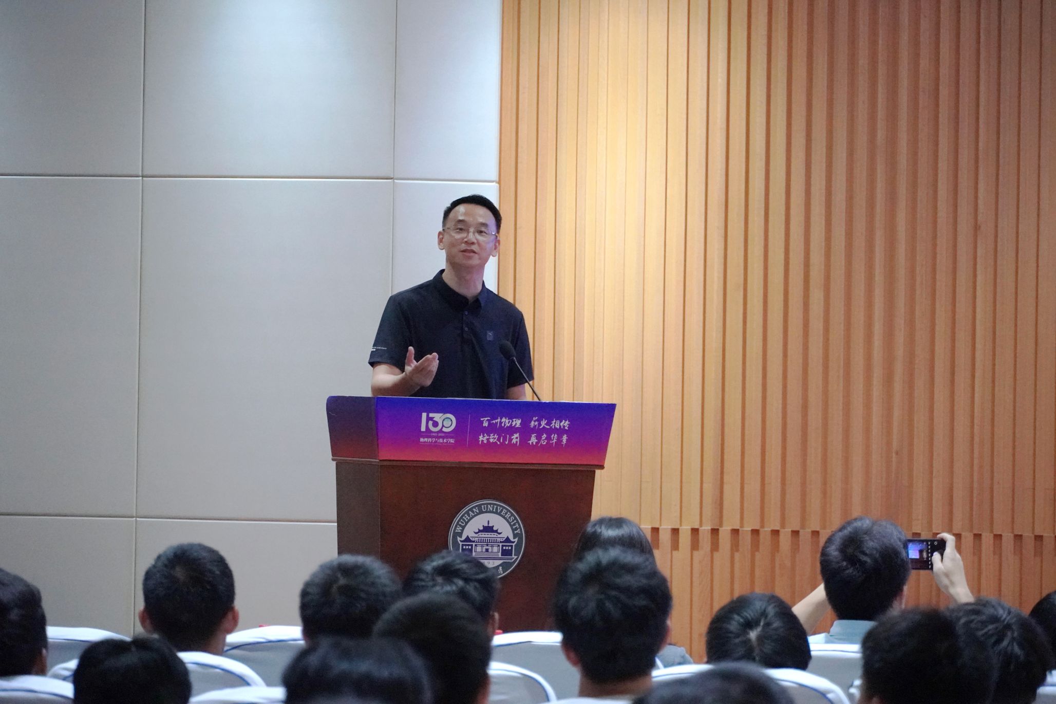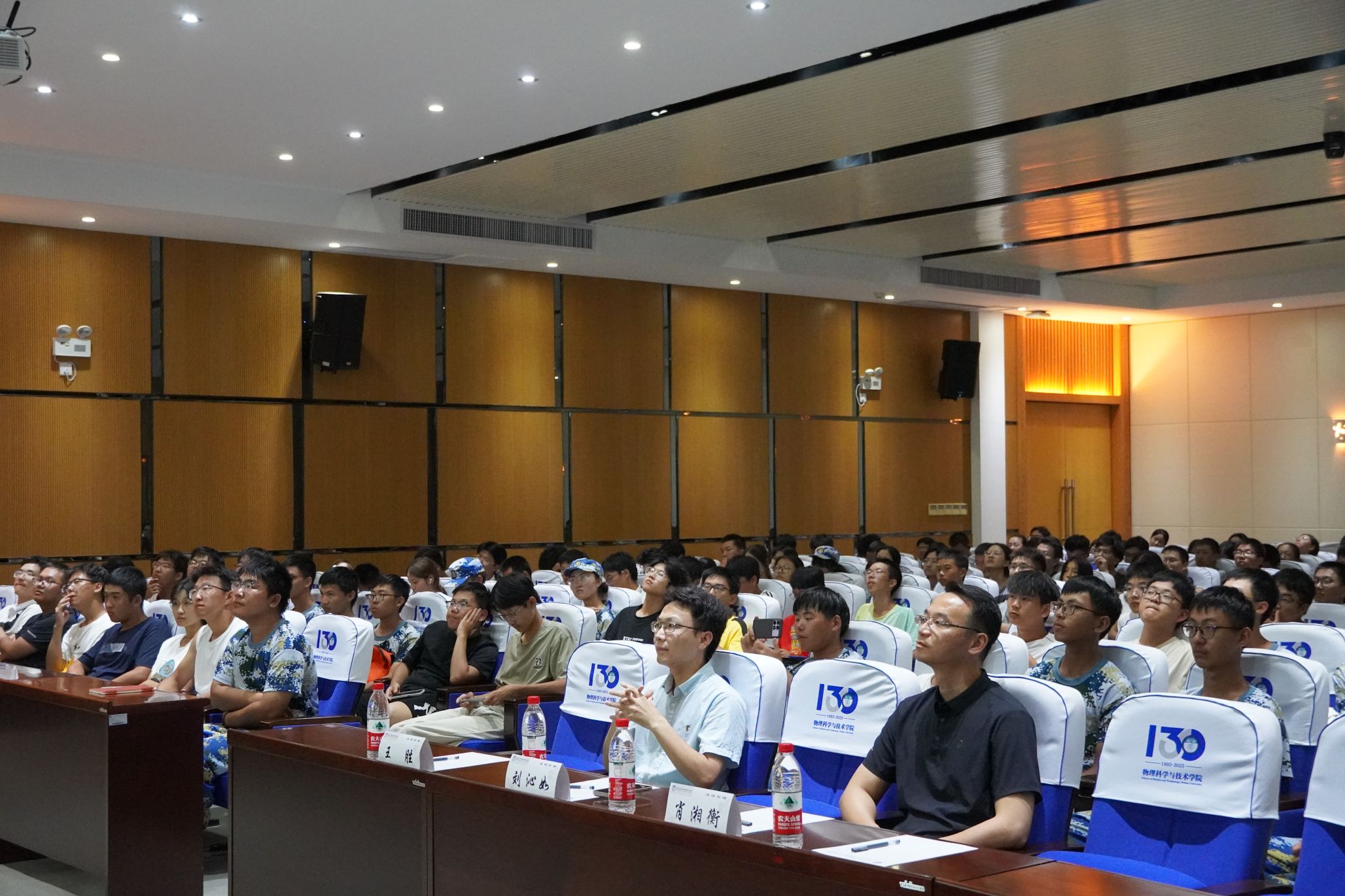 王胜教授以自己的学术旅程为例,向新生们讲解如何通过不断学习和研究,探索物理科学的奥秘。王胜教授以学习主体的区别、学习目标的区别、学习方法的区别三个要点向大家介绍如何开启自己的大学生活。王胜教授指出,学习主体在于步入大学生活后,同学们都是独立自主的个体,需要保持学习的惯性和内驱力;大学将会面临专业课程、学生活动、实习实践、志愿服务、国际交流等多方面事项,在学习目标上,需要大家培养处理复杂问题能力以及批判性思维能力,制定计划,明确方向;学习方法则偏向于更自主、自律性,需要大家提升信息检索能力、扩宽信息收集渠道,打破信息茧房,充分利用学校、学院、网络资源,找到真正激发自己学习热情的方法。