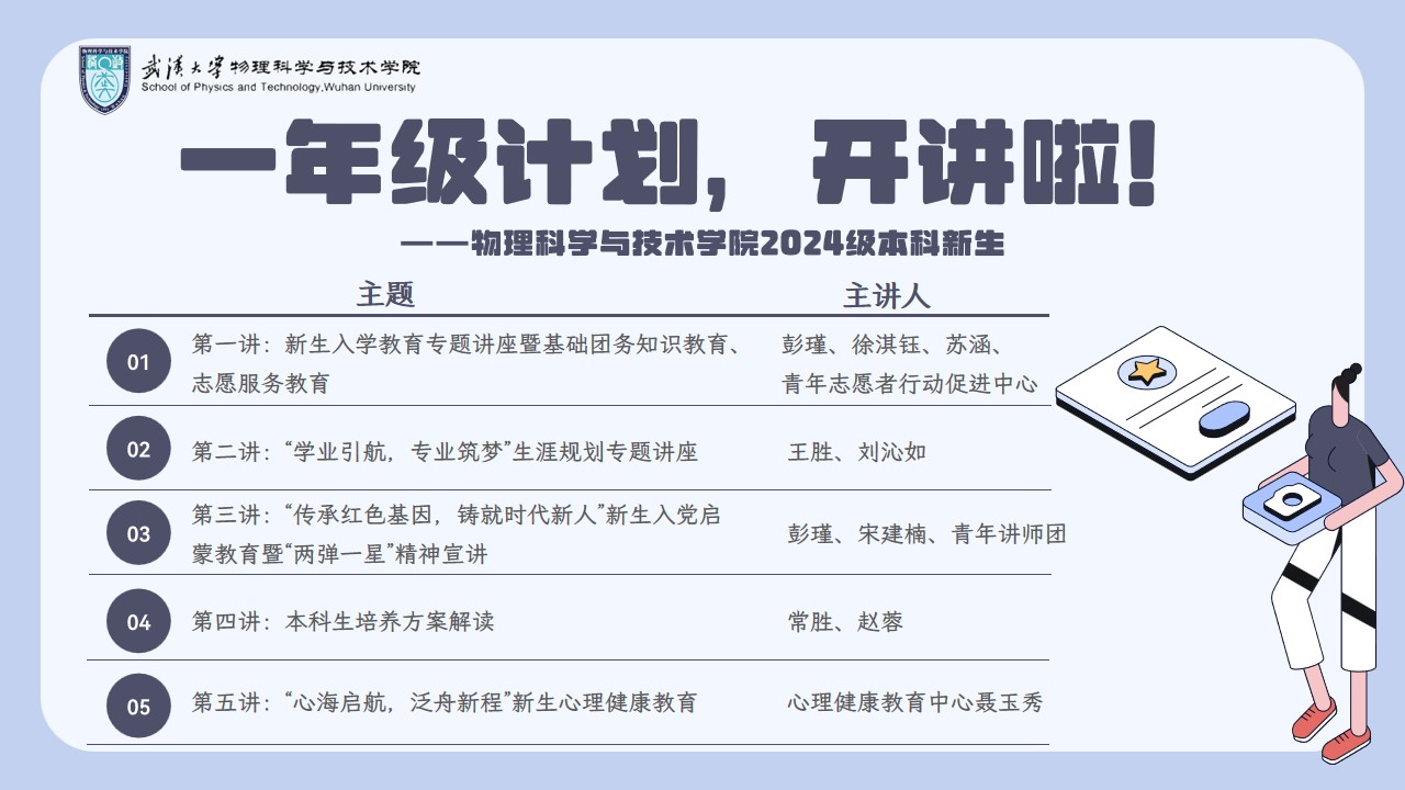 D503报告厅圆满举行。新生生涯规划专题讲座邀请学院党委书记肖湘衡教授、王胜教授、2019届毕业生刘沁如学姐作为主讲嘉宾,由2024级新生辅导员彭瑾老师主持,2024级全体本科新生参与活动。