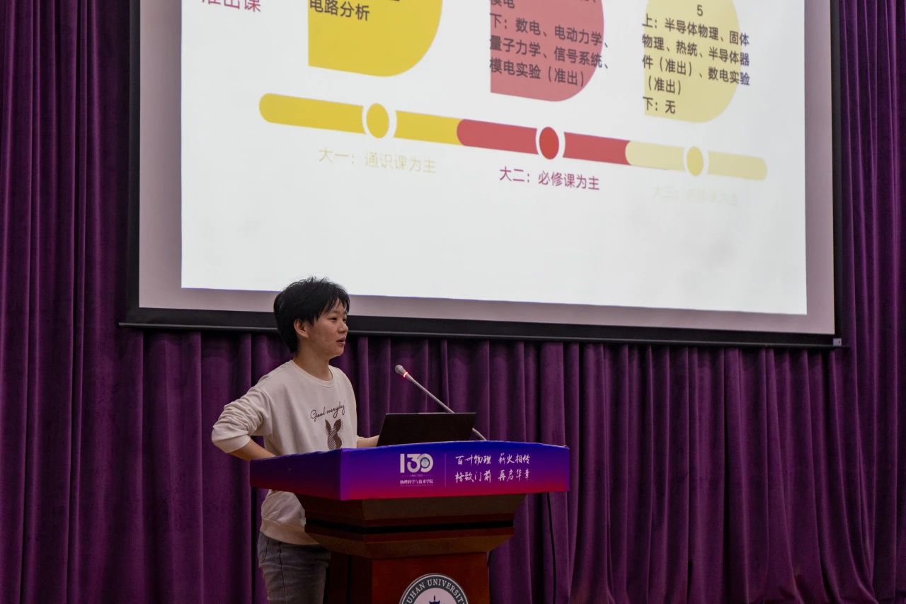 罗同学从转专业、参加课题组、学科竞赛以及学习之外的方面进行介绍。关于“转专业”,转专业的时间在大一下,他建议有此方面需求的同学可以在寒假期间于辅导员、学工部等处了解相关信息。关于“课题组”,罗同学建议大家可以在大一、大二时提前了解,旁听课题组的组会,大三去询问物理老师参加课题组。关于“竞赛”,罗同学建议大学在大一可以尝试数竞和物竞,大二去参加数学建模相关竞赛。此外,罗同学推荐同学们参加夏令营,并推荐了一个电子书的网站。他还建议同学们假期之中可以通过支教等志愿活动丰富大学生活,锻炼自己的同时可以缓解学习上的压力。