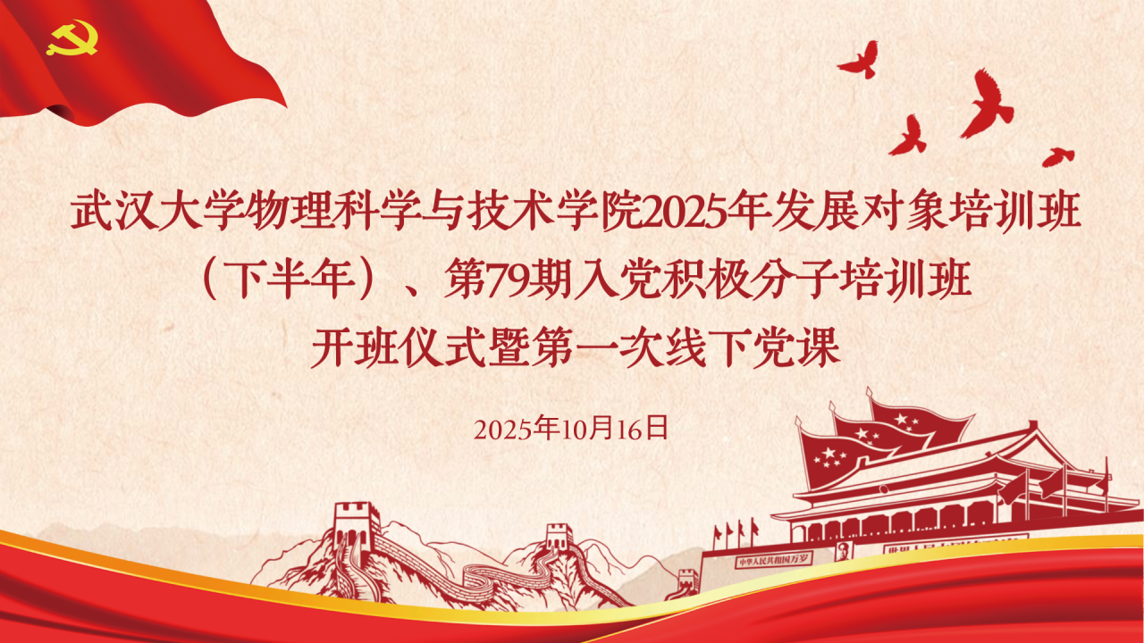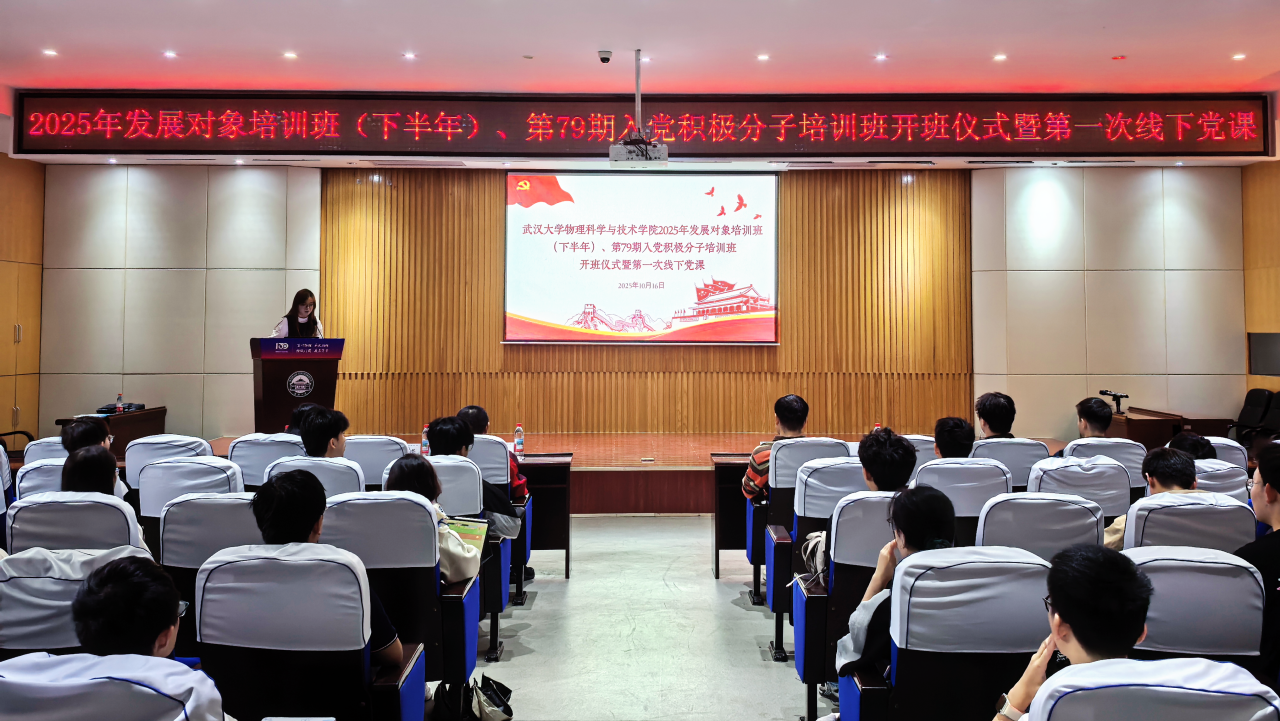 学院党委副书记陈阳老师对参与此次党校培训的学员们表示了诚挚的祝贺,并强调参训学员要筑牢信仰根基、端正入党动机,深刻把握“入党为什么、入党干什么”这一根本命题,将共产主义远大理想与中国特色社会主义共同理想融入血脉,在学思践悟中持续端正入党动机。他进一步指出,学员应坚持理论联系实际、积极参加实践,既要系统学习习近平新时代中国特色社会主义思想的科学体系,读原著、悟原理,又要积极投身科技实践与志愿服务,弘扬科学精神,做到知行合一,在实干中锤炼过硬本领。同时,陈阳着重强调纪律意识、做好表率作用,要求学员以党员标准严格要求自己,自觉遵守培训安排,将纪律规范内化于心、外化于行,在严肃认真的学习氛围中完成各项培训任务。最后,他鼓励全体物理学子在学校深化改革的关键之年,深刻领悟“接续砥砺奋斗,练就过硬本领,勇攀科学高峰”的时代内涵,争做有理想、敢担当、能吃苦、肯奋斗的新时代青年,以扎实行动回应“中国式现代化,武大青年何为”的时代之问,交出无愧于党和人民的青春答卷。