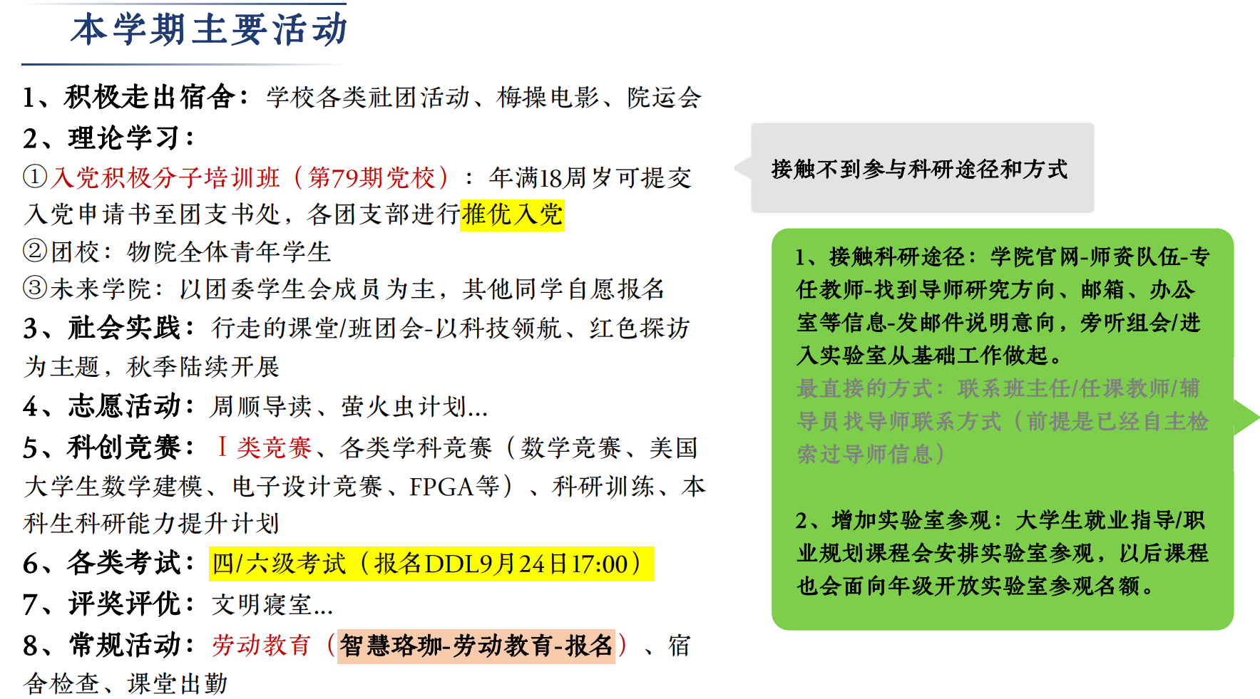 学院本学期将组织开展丰富多彩的社团活动、社会实践、志愿服务、科创竞赛等课外活动,鼓励同学们“走出宿舍、走向操场、走进实验室”,积极参与各类活动,拓宽视野、提升能力。在加强专业学习之外,彭老师重申了劳动教育课程的重要性,要求各位同学在“劳动主题教育”“生活技能培养”“创新实践”“专项锻炼”四大板块中至少选择三项参与,积极达成36学时的实践要求,从而实现“以劳树德、以劳增智”的育人目标。通过对新学期心理健康普测工作介绍,鼓励同学们定期进行心理测评,学会关怀自我,以更积极、健康的心态迎接新学期的挑战与成长。