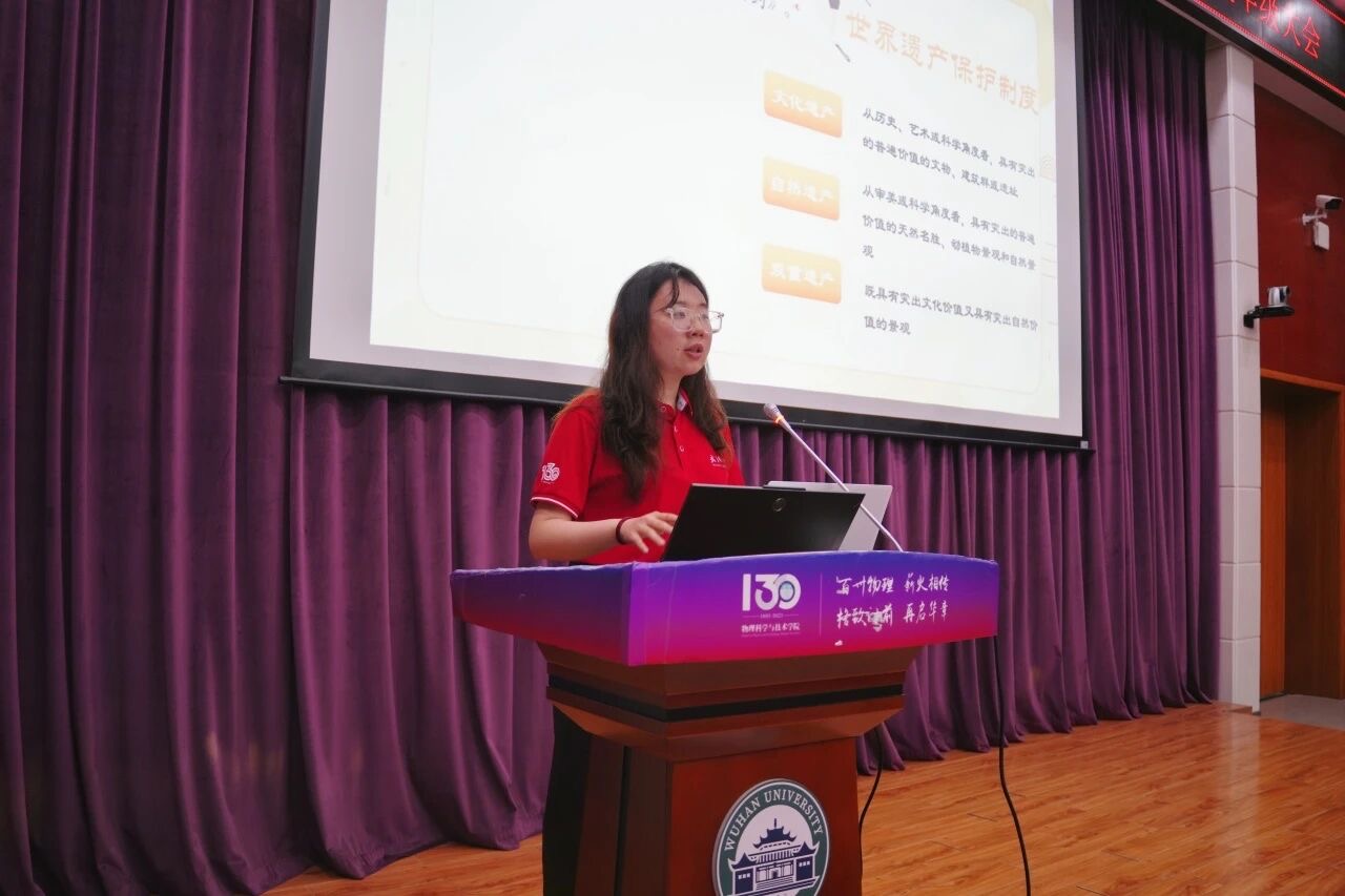 法学院刘芳彤则聚焦于中华优秀传统文化的传承与弘扬,以习近平总书记考察云梦县博物馆的重要讲话精神为切入点,深入解读了文物保护与研究的重要性,以及中华优秀传统文化对于增强文化自信的重要意义。她详细介绍了世界遗产保护制度与中国在这一领域的积极贡献,展示了湖北省丰富的世界遗产资源,如武当山古建筑群、钟祥明显陵等世界文化遗产,以及神农架世界自然遗产。同时,她还通过介绍楚文化瑰宝——曾侯乙编钟的出土故事、铸造工艺及其在国际文化交流中的重要地位,生动展现了中华优秀传统文化的独特魅力。