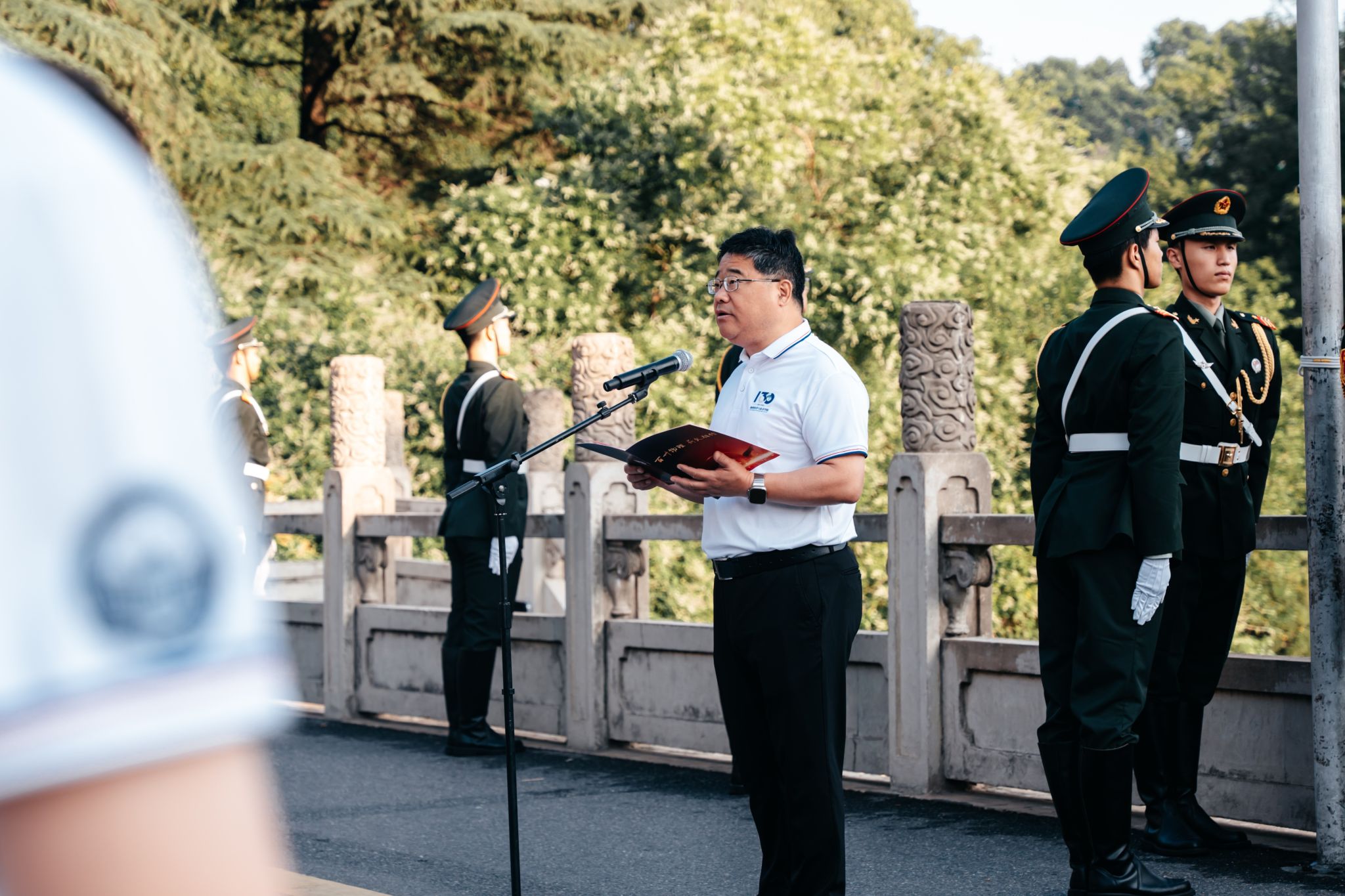 6时30分,升旗仪式正式开始。护旗手们昂首挺胸,伴着铿锵有力的进行曲,踏着整齐的步伐,护卫着五星红旗出旗。伴随着雄壮激昂的《义勇军进行曲》,鲜艳的五星红旗在晨光中冉冉升起。全体人员庄严行注目礼,共同见证国旗升起的神圣时刻,内心激荡着强烈的爱国之情和报国之志。