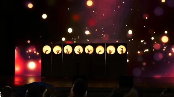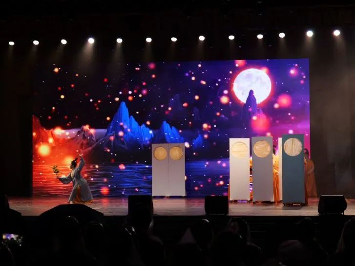 少女似赏花嬉戏,月下如积水空明,而舞台设计中巧妙融入的八块移动屏风也值得称道一番。它们层层叠叠,错落有致,不仅营造出曲径通幽的园林意境,更通过镂空设计,将少女们的手姿投影其上,如同花影婆娑,美不胜收,为整场表演增添了几分神秘与雅致。