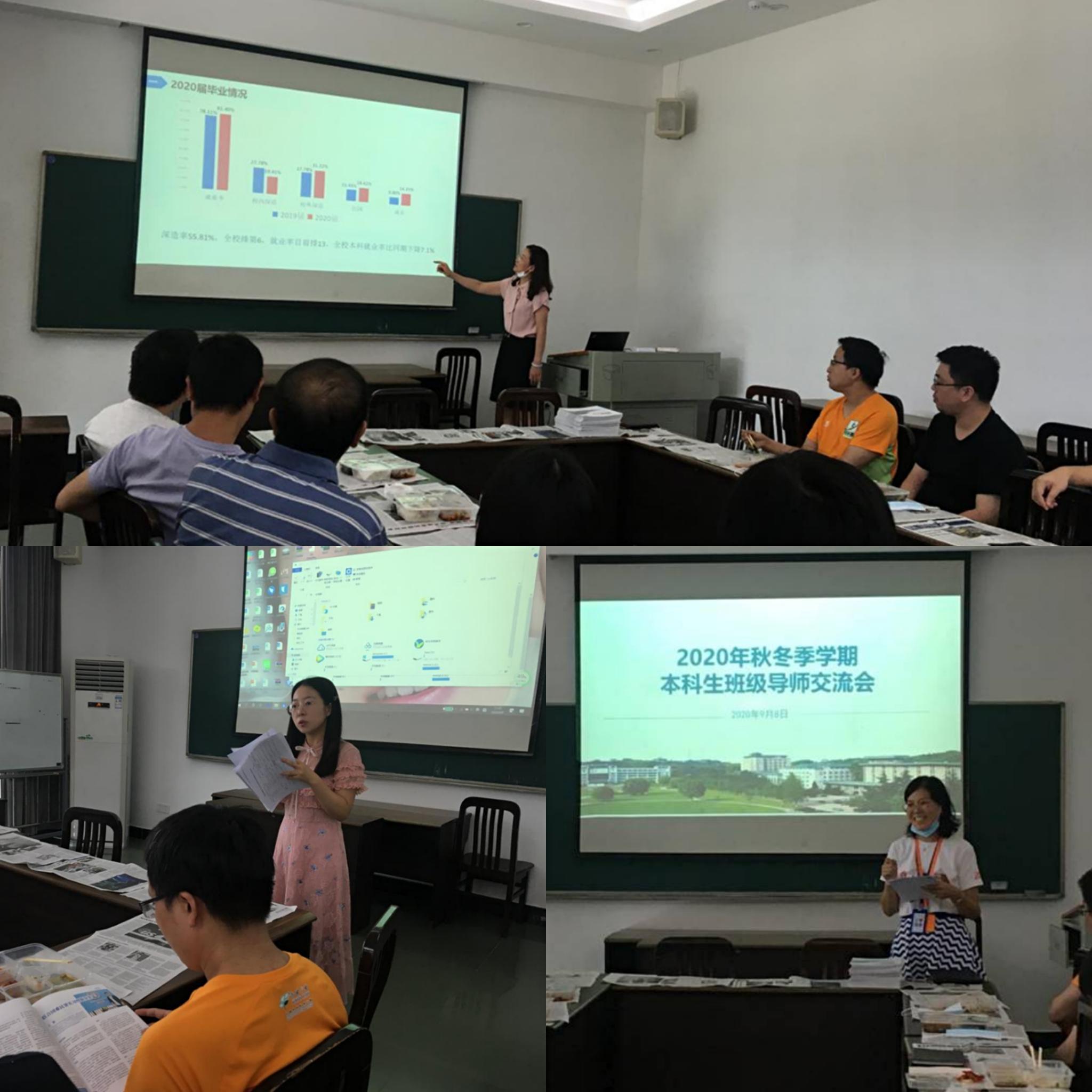 2020年秋冬季学期本科生班级导师交流会在201报告厅顺利举行。党委副书记张宇宁老师,辅导员卢丽珠老师、秦书凝老师、龙云翔老师与2017级至2020级的各班班导师一起,交流班级建设工作,展望新学期。老师们沟通交流,轻松愉快,氛围融洽。
