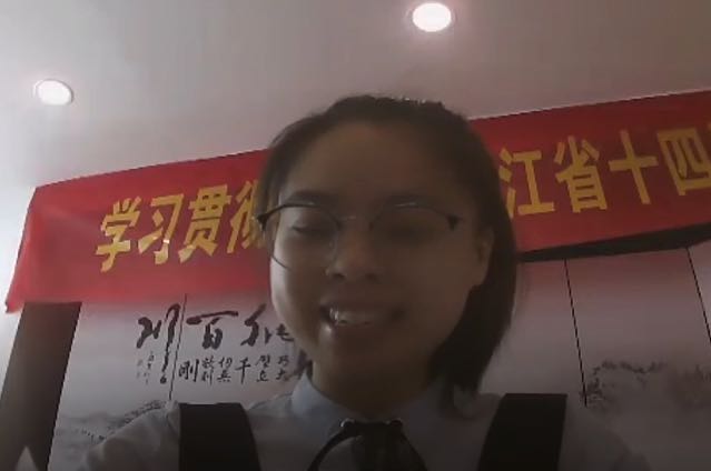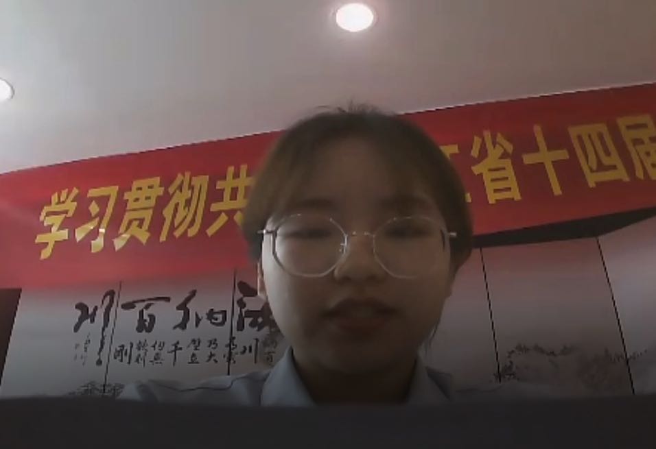 “全国优秀共青团员”吴延蕾作为温州籍学子代表着重分享了五四精神的核心——爱国主义精神,她以高中母校浙江省平阳中学的校歌“为国家之桢干,为社会之先锋”勉励与会团员青年“练就过硬本领,投身强国伟业”。这与吃瓜网站 校歌“今朝多磨砺,明日做栋梁”异曲同工,引发在场团员青年的广泛共鸣。