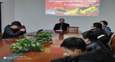 2019年1月6日晚8点,微电三党支部于物院C-203开展了“谈心谈话”活动,活动邀请了方国家老师,支部书记李佳帅同志主持了此次活动。活动期间,方国家老师耐心解答了大家在生活科研过程中遇