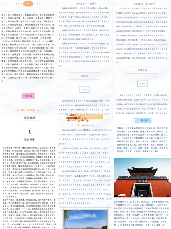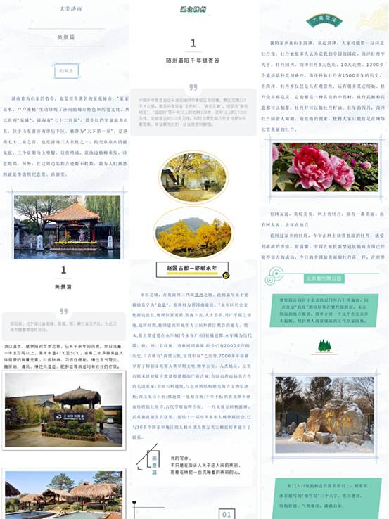 在河南,我们可以欣赏到开封府的威严、信阳的最美山水、商丘古城的历史悠久、羲皇故都的岁月痕迹、遂平嵖岈山的怪石林立。在湖北,随州洛阳千年银杏随风飘落;大悟仙居顶的气魄令人流连忘返;崇阳青山水库的波澜,让人惊叹。在山东,济南趵突泉边的杨柳垂发,诗意绵绵;新泰青云湖碧波荡漾,秀水含峰;菏泽的牡丹美轮美奂。在湖南,资江水横贯益阳汇入八百里洞庭,雪峰山、碧云峰、回龙山群山环绕,山水交融之处实乃钟灵毓秀之地。在浙江,从百草园到三味书屋,从孔乙己的茴香豆到故乡的社戏,随处可见鲁迅文化中的故乡情结。在北京,紫竹院亭、廊、轩、馆错落有致,修竹花木巧布其间,举目皆如画,四时景宜人。在河北,这里有隋末唐初夏王窦建德建都的广府古城;有以自荐而扬名古今的毛遂墓冢。此次云旅游让大家大饱眼福,收获满满,让大家在无聊的居家隔离中收获了春天的色彩。