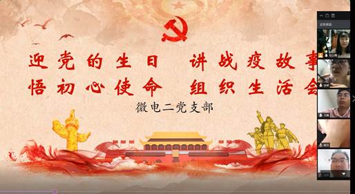 微电二党支部于2020年7月6号上午10点通过腾讯会议的形式,线上召开“迎党的生日、讲战疫故事、悟初