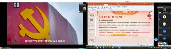 会议伊始,唐庆航同学向大家介绍了从1920年成立“共产党小组”,到1921年中共一大在南湖红船上召开的艰难过程。接着,通过视频《从红船到巨轮》,支部同学了解了共产党带领人民赶走侵略者、建立新中国、共战新冠疫情、为全面建成小康社会而奋斗的过程,可以看到,当初的红船已经变成一艘承载人民希望的巨轮。