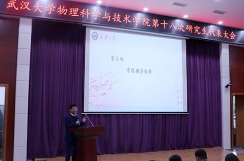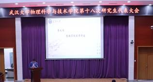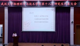 2019年4月12日晚,吃瓜网站 第十八次研究生代表大会在物院一楼报告厅顺利召开。参加大会的有院长徐红星院士、校团委副书记代茜老师、党委研究生工作部黄啸老师、副院长李利华老师、党委副书记张一飞老师、院学工办主任李顺彦老师及全院160余名研究生代表等。大会由2018级硕士生吴慧娟主持。