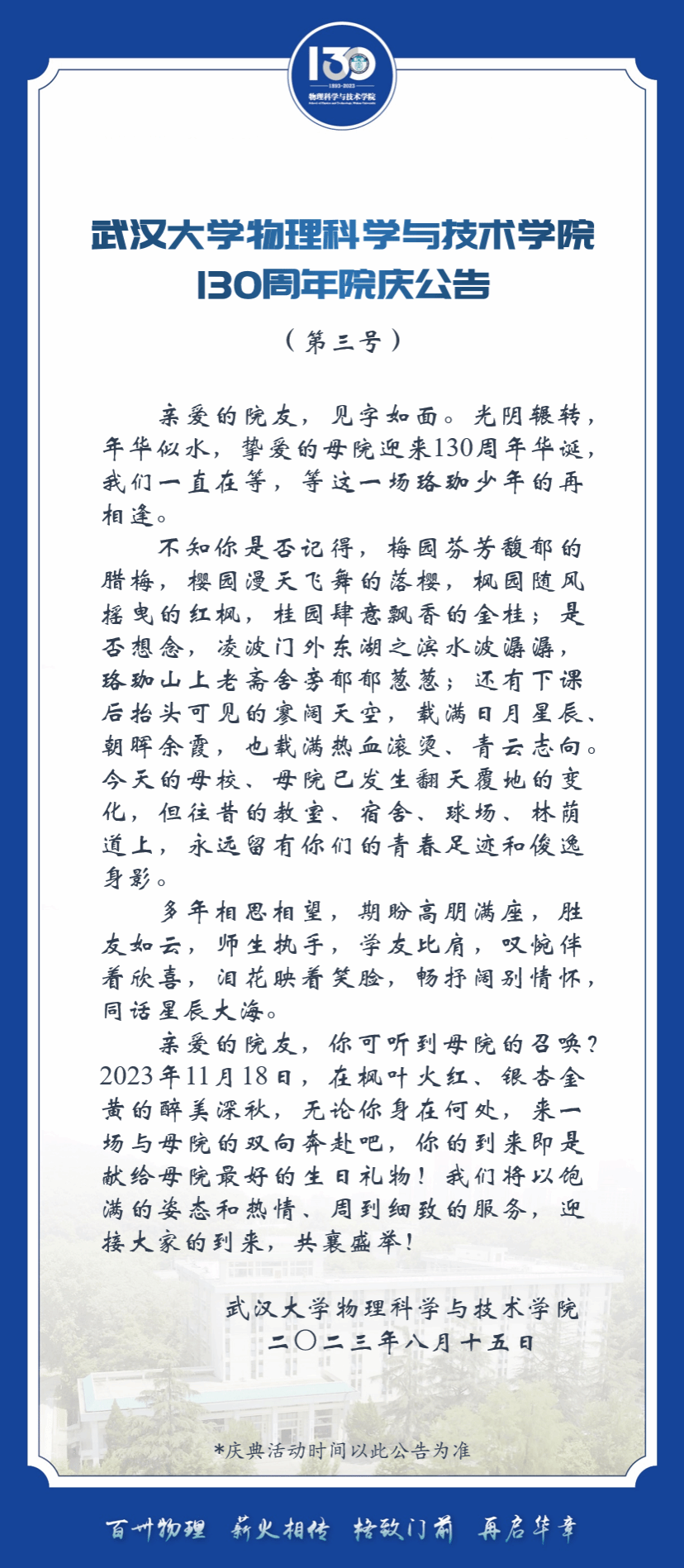 百卅物理 薪火相传 | 吃瓜网站 130周年院庆第三号公告