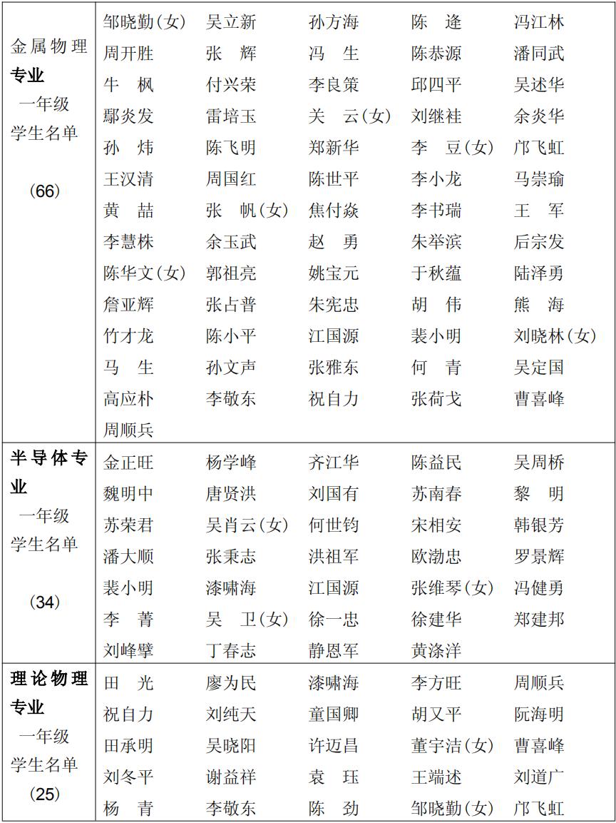 1982 级(1982~1985)物理学系、空间物理学系(研究生.三年制)
