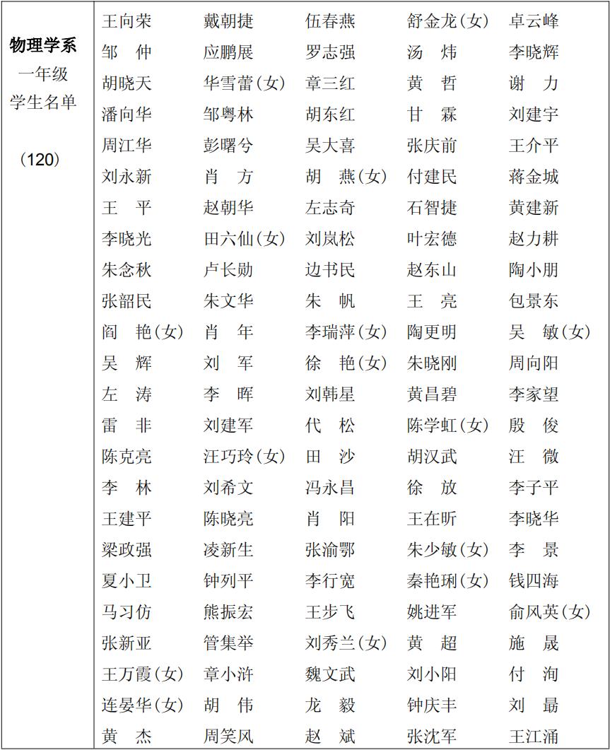 1980 级(1980~1984)物理学系(四年制)