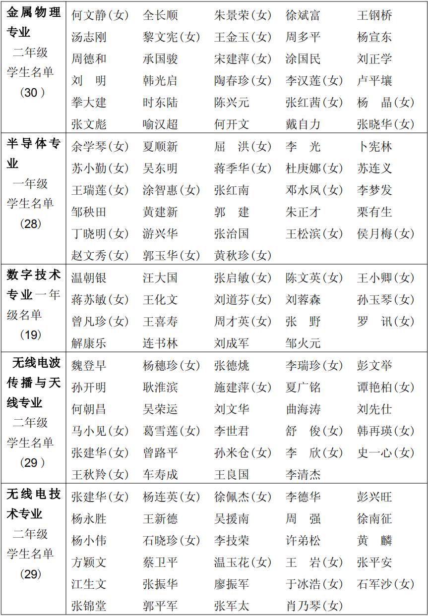 1974 级(1974~1977)物理学系(工农学员三年制)