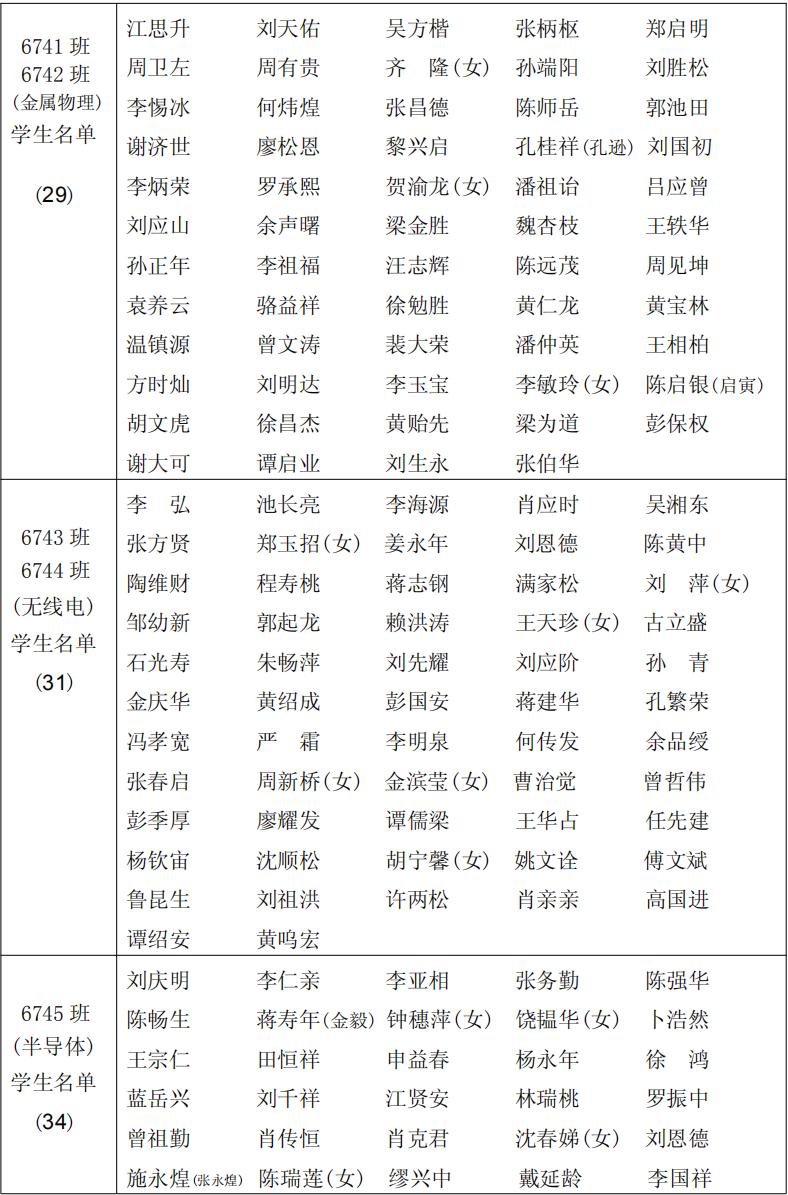 1968 届(1963~1968)物理学系/核物理、无线电、半导体、金属物理专业(五年制)