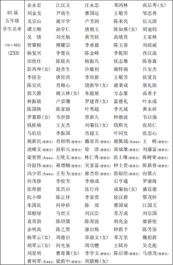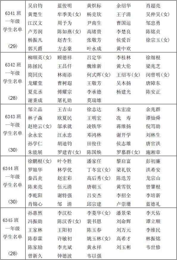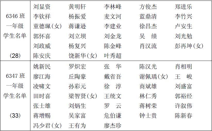 注:6347 班为1959 年度将湖北大学借读生而编制的班